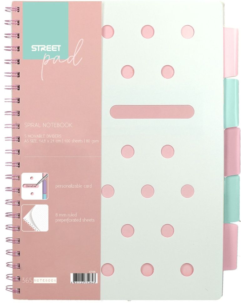 Тетрадка SP Dots, А4, спирала, PP,100л,широки редове , разделител, розова