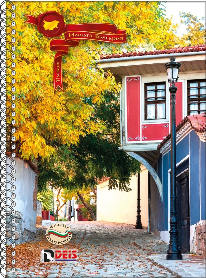 Корици каширана мукава, гланц ламинат. Спирала тип гребен. Широки редове. Серии "Нашата България" и "Стил"