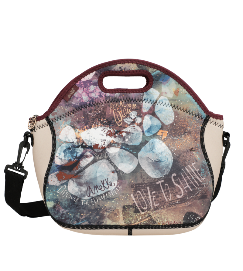 Чанта за обяд Anekke изработена от здрав неопрен. Голямо основно отделение,затварящо се с цип,две къси дръжки и една дълга регулируема.