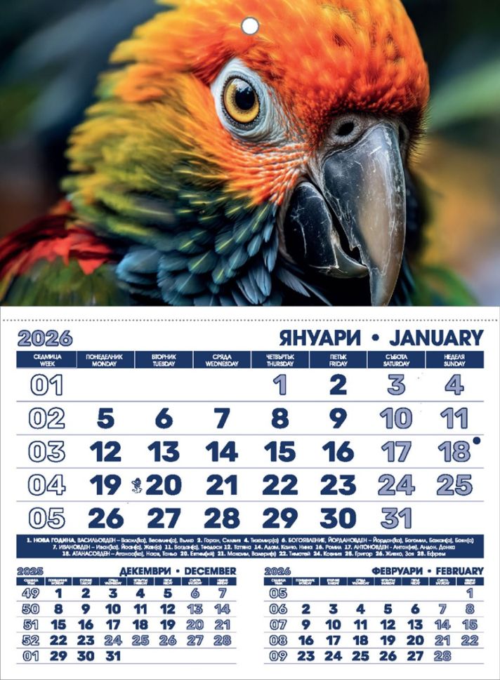 Начало Продукти за реклама Стенни и настолни календари Стенен работен календар РКМ, 1-секционен, СИН