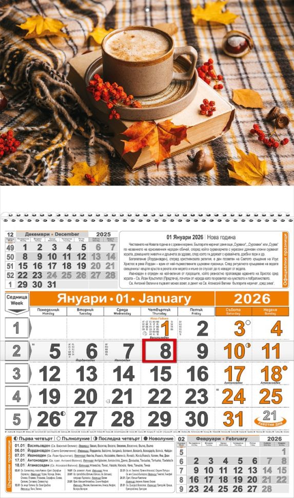 Стенен работен календар КС 11 с цветна глава,1секция, No 2