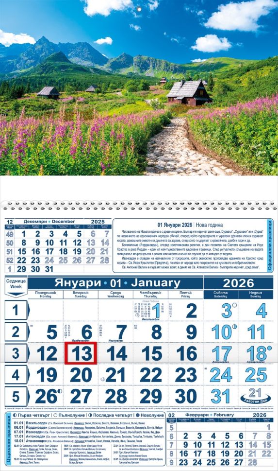 Стенен работен календар КС 16 с цветна глава,1секция, No 6