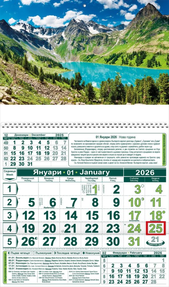 Стенен работен календар КС 12 с цветна глава,1секция, No 8