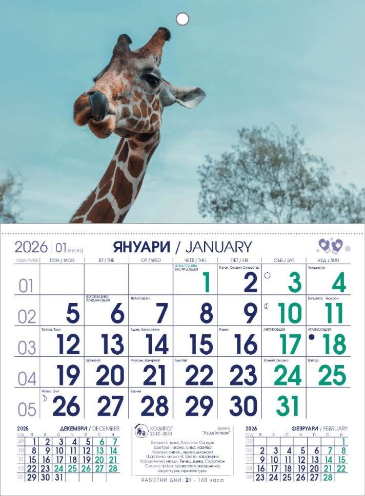 Стенен работен календар РКМ Аванти, 1-секц, син/зелен