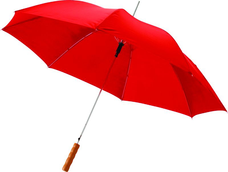 Чадър автоматичен 23" релефна дървена дръжка, червен