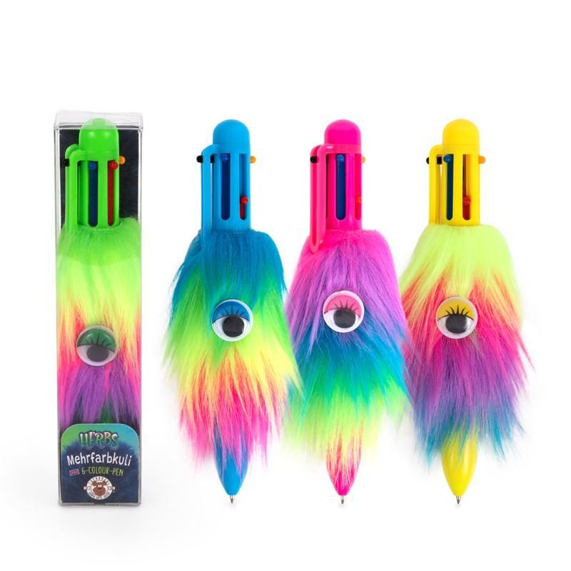 Многоцветна химикалка 6 в 1 - модерен дизайн на писалка с щипка и трептящо око. Дължина на химикалката: 14,4 cm Цветове на писане: синьо, червено, оранжево, зелено, лилаво, черно. Химикалката се предлага в 4 различни цвята: жълто, зелено, розово, синьо.