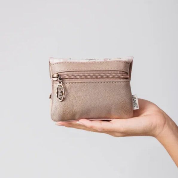Вид: Висококачествена еко кожа Вид на затваряне: Цип и тик-так Джобове: 3 отделения, като има и специално място за монети Размери: 13 x 10 x 2 см Вътрешен състав: 100% ПОЛИЕСТЕР