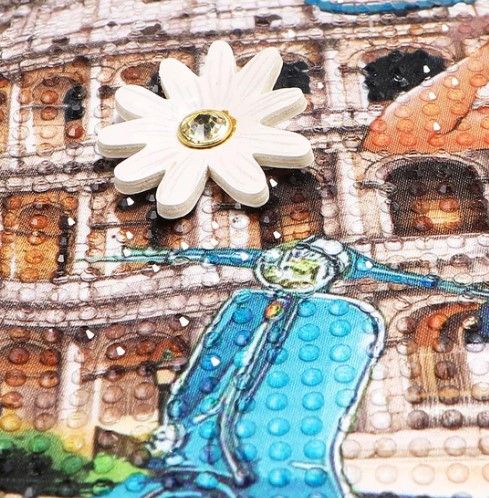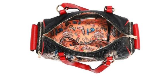 Изработена от висококачествена еко кожа Удължено затваряне с цип Плоски горни презрамки (15 см) Предната част е украсена със светли кристали, звезди и цветя Странични джобове с цип и капак Заден джоб с цип Цип с гравирано лого и диамантена плака Изключителна вътрешна подплата с полиестерен печат Вътрешен заден джоб с цип, табелка с лого и каишка за ключодържател 2 предни вътрешни джоба за съхранение на смартфон и портфейл Включва регулируема и подвижна презрамка с лого от плат Размери: 34,3 см дължина x 14 см ширина x 22,9 см височина Тегло: 0,91 кг