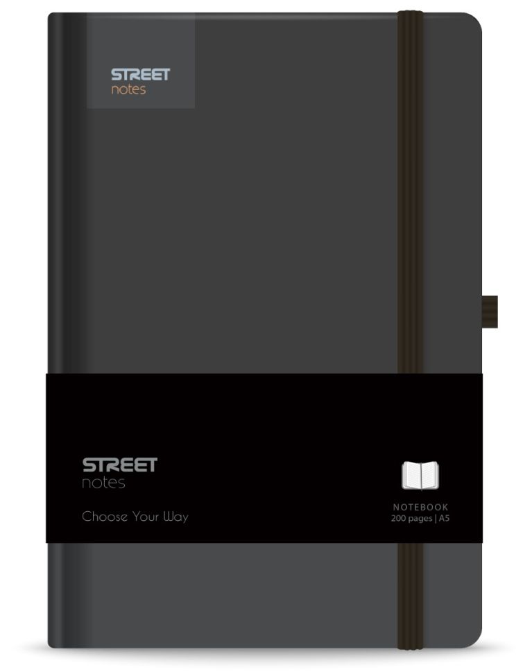 Бележник с ластик A5 Street, твърда корица, 96 листа, BLACK