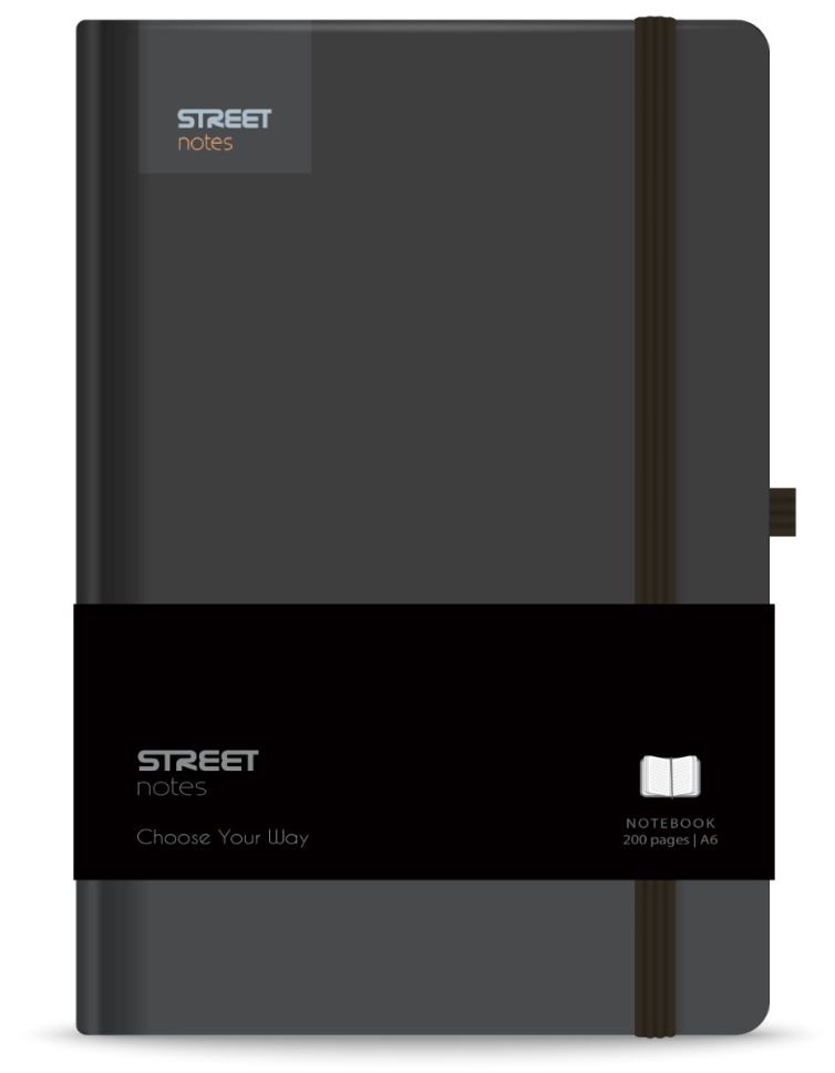 Бележник с ластик A6 Street, твърда корица, 96 листа, BLACK