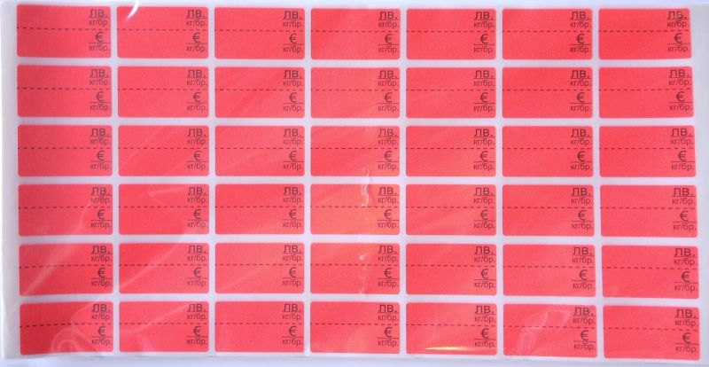 Етикети 17х30 mm,30л.,1260 бр,лв/евро, червен
