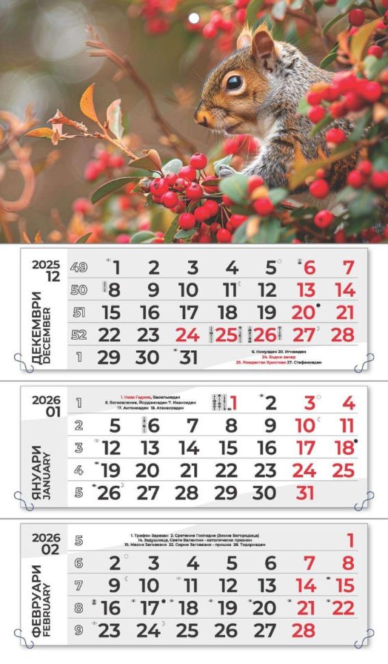 Стенен работен календар РК 313, 3 секции, черен/черв