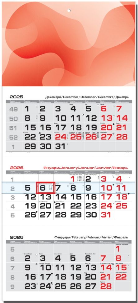 Стенен работен календар Бизнес 3-секц, червен