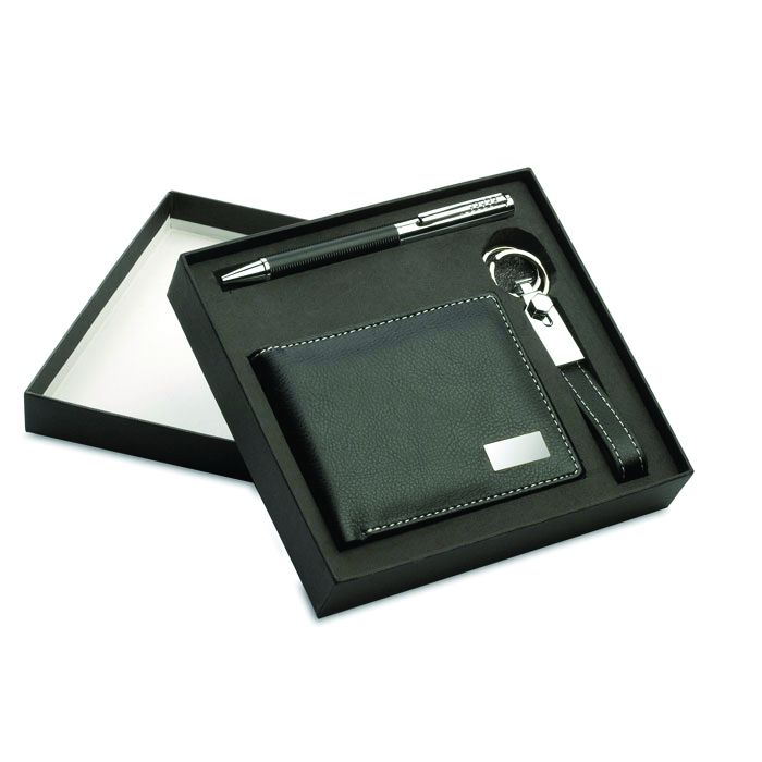 Начало Продукти за реклама Папки телефон, бележки, визитници Комплект Eleganci, портфейл, химикалка и ключодържател