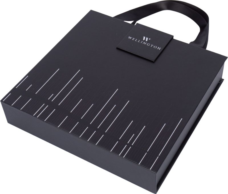 Бележник А5 и метална химикалка с хромирани метални части в подаръчна кутия тип чанта с дръжки. 22.5 x 21.5 x 4.6 cm