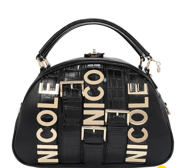 Външна част от еко кожа. Свободни, плоски горни дръжки (височина на спускане 10 см) с автентична кръгла висулка Nicole Lee. Основно отделение с цип. Задно отделение с цип и капак с закопчаване на винт. Коланчета с катарами и метално лого. Странични метални пръстени за закачане на презрамка. Заден джоб с цип. Метални крачета на дъното за допълнителна защита. Размери: 32.5 x 23 x 16 cm