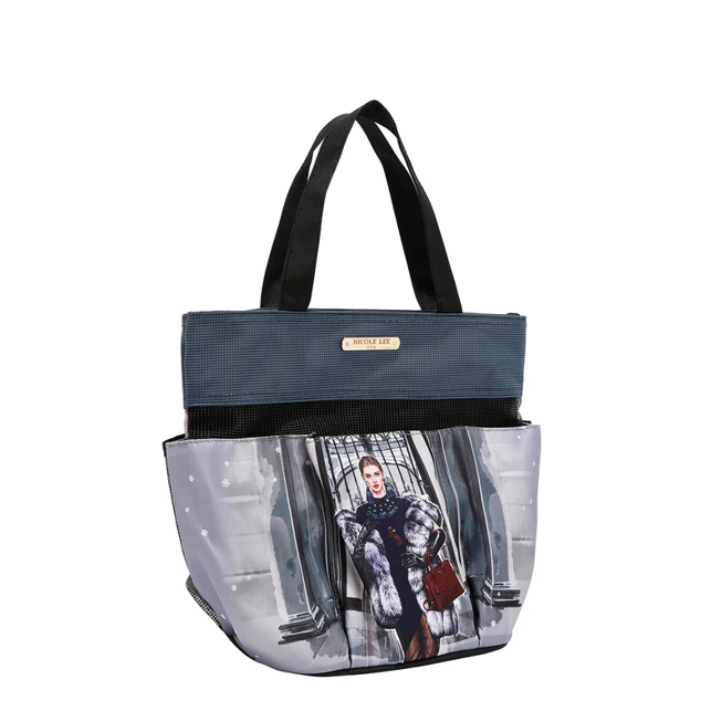 Външна част от полиестер с вътрешна подплата от мрежа. Равен връх. Закопчаване с велкро. Ексклузивен дизайн на принт на Nicole Lee само на предните и задните джобове. Имена на логото гравирани на табелка. 6 открити джоба за съхранение на бутилки с вода и основни принадлежности отпред и отзад. Структурирано, плоско дъно. Размер: 30.5 x 16.5 x 26.5 cm