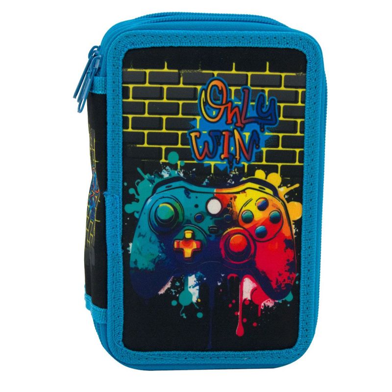 Троен пълен несесер Размери: 19,5 x 12,5 x 6 см. Несесерът съдържа: - 18 дървени цветни моливи - 18 флумастери - острилка - гума - химикалка - линия - 2 графитни молива - мини тефтер