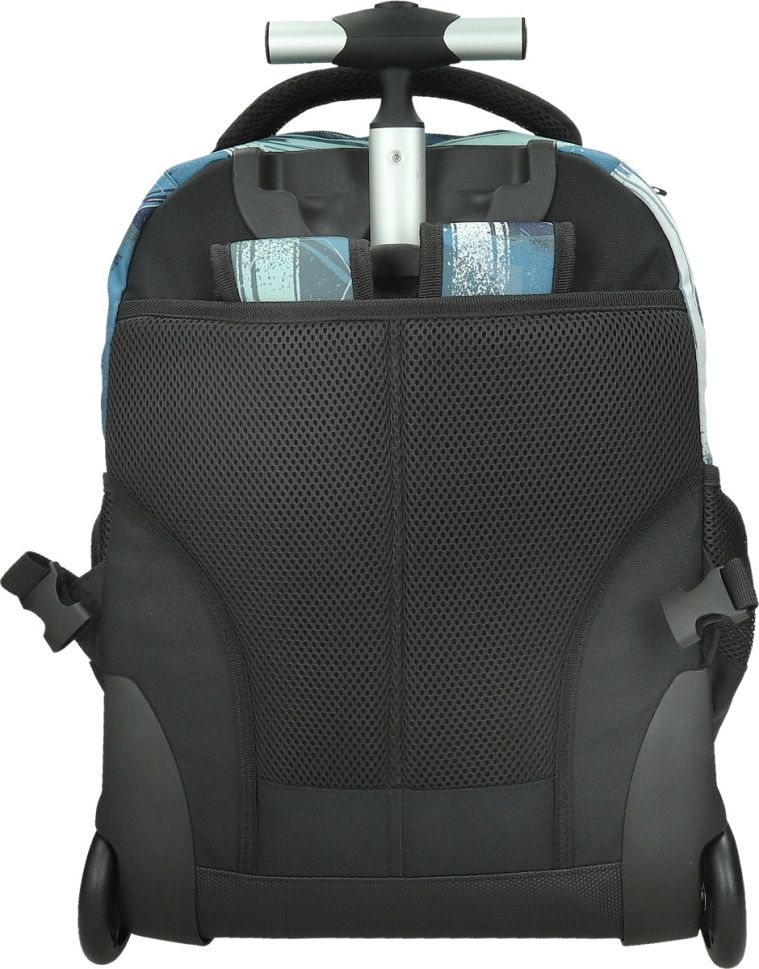 34 х 22 х 45 cm. 4 ципа. Два основни големи и два предни джоба Странични джобове.
