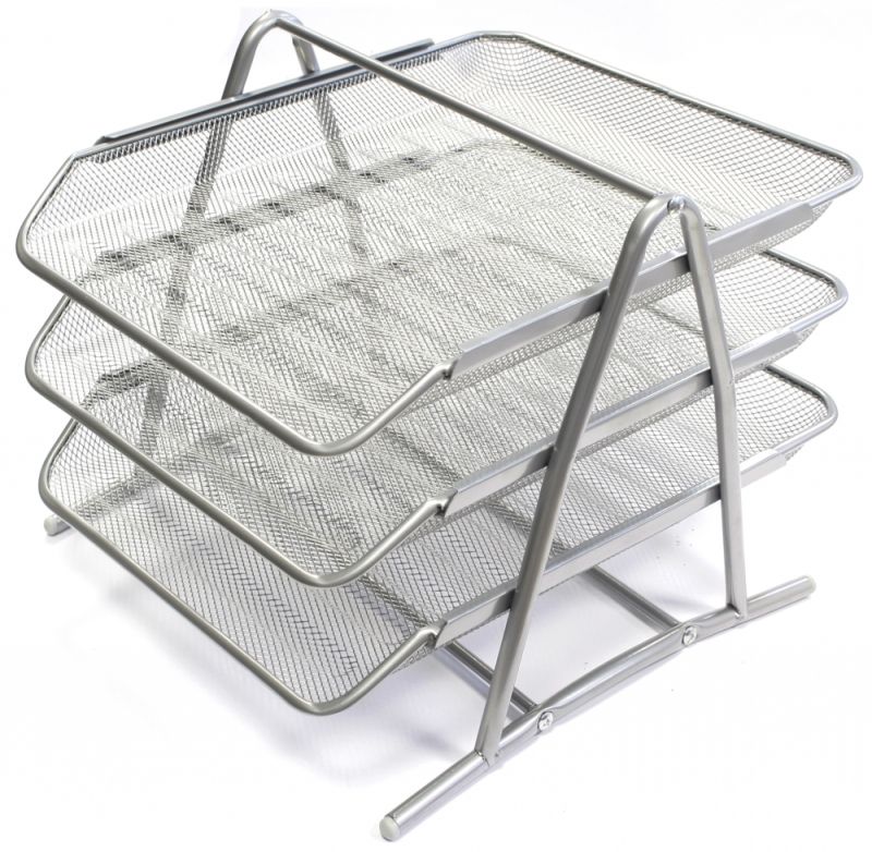 Хоризонтална поставка, 3 броя, метална мрежа, сребриста