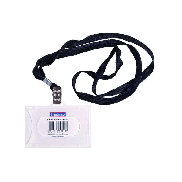 * размери: 85 x 50 mm * с текстилна лента * изработена от прозрачна пластмаса * сменяема табелка от бял картон * размери: 85 x 50 mm * с текстилна лента * изработена от прозрачна пластмаса * сменяема табелка от бял картон