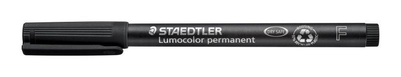 Универсален перманентен маркер за почти всички повърхности: хартия, картон, пластмаса, стъкло, порцелан, метал, камък, дърво, кожа и др.