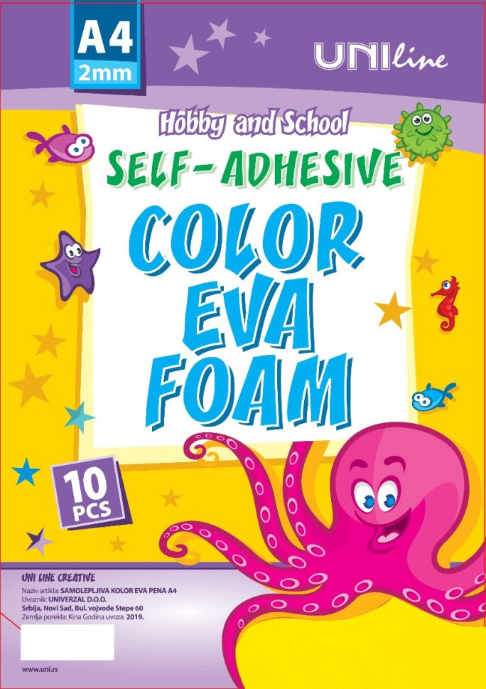 Листа Uniline от EVA пяна, А4, опаковка 10, самоз, жълти