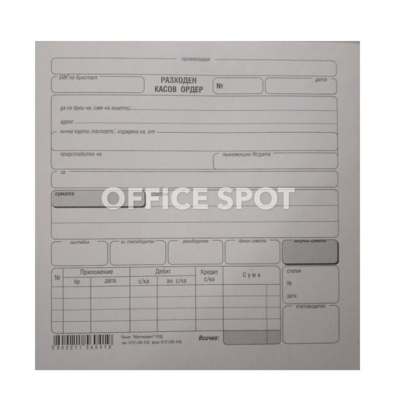 Начало Хартиени изделия Формуляри Разходен касов ордер 2/3 А5 вестник 100 листа