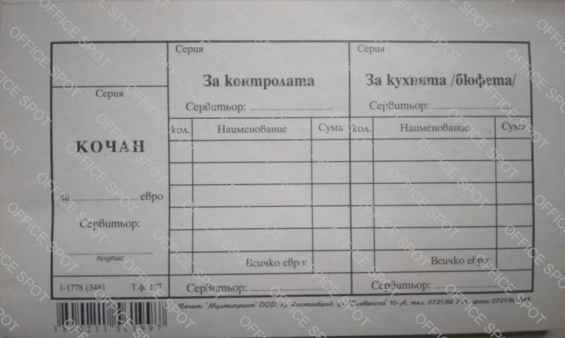 Сервитьорски купони 2/3 В6 вестник 100 листа