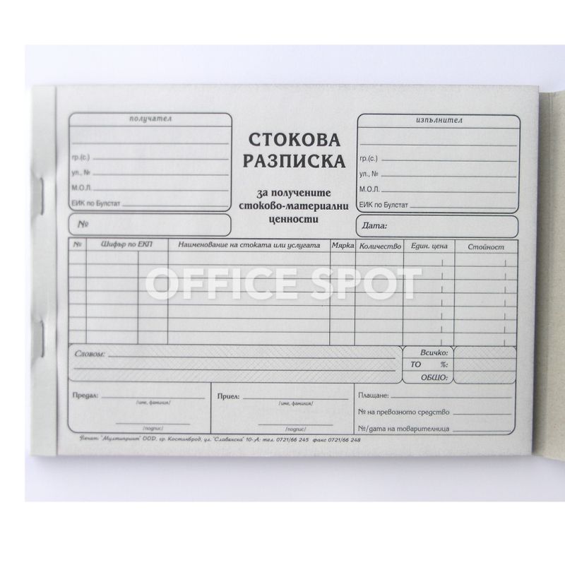 Стокова разписка, 7 реда, химизирана, А5, 100 листа