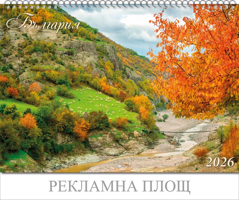 Сгънат формат: 34 х 24 cm + 4 cm удължена корица Разгънат формат 34 х 52 cm Тяло: 6 листа (по 2 месеца на лист), двустранен хром гланц, цветност 4+4, UV лак. Отбелязан пореден номер на седмицата, официални и църковни празници, имени дни, фази на луната, зодии, DST Корица: двустранен хром гланц, цветност 4+4 + UV лак. Захващане с метална спирала Рекламна площ 34 х 4 cm Сгънат формат: 34 х 24 cm + 4 cm удължена корица Разгънат формат 34 х 52 cm Тяло: 6 листа (по 2 месеца на лист), двустранен хром гланц, цветност 4+4, UV лак. Отбелязан пореден номер на седмицата, официални и църковни празници, имени дни, фази на луната, зодии, DST Корица: двустранен хром гланц, цветност 4+4 + UV лак. Захващане с метална спирала Рекламна площ 34 х 4 cm