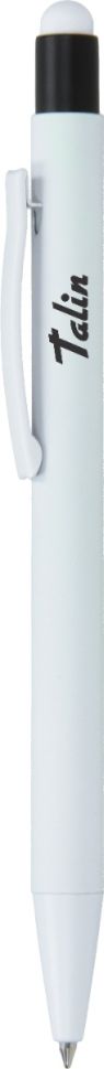 Метална. С цветен гумиран накрайник за touch screen. Цветът при гравиране е като цвета на накрайника.