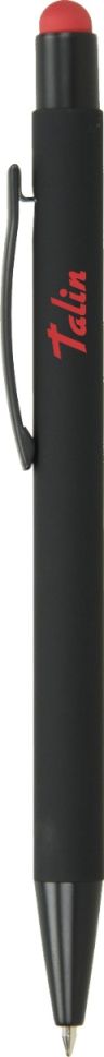 Метална. С цветен гумиран накрайник за touch screen. Цветът при гравиране е като цвета на накрайника.