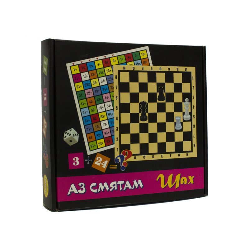 Съдържа: двустранно табло за двете игри, комплект 16 фигури за шах и зарче.