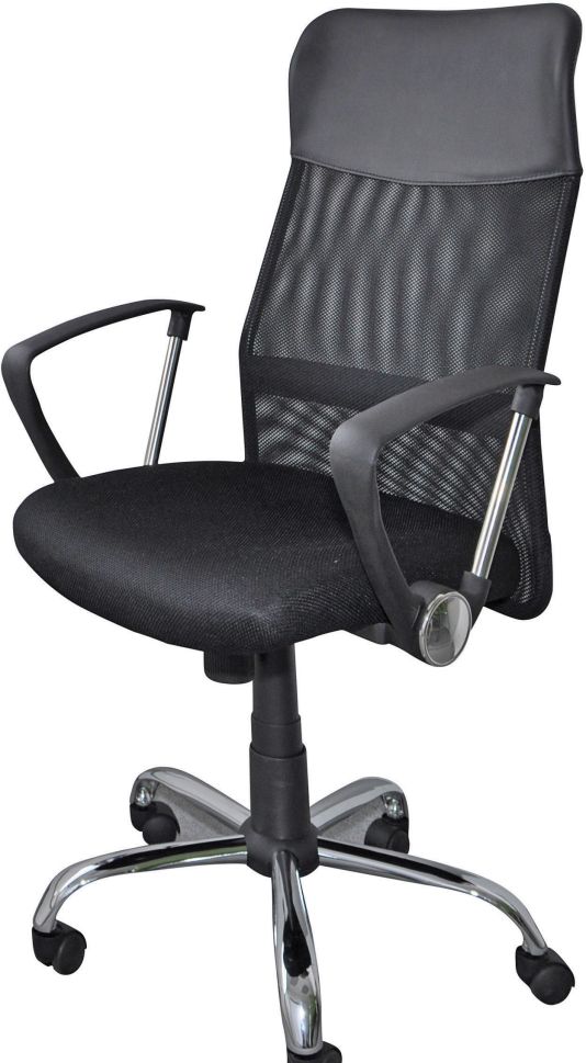 * TILT механизъм * механизъм с възможност за заключване в изходна позиция * плавно регулиране на височината на седене * ергономични седалка и облегалка тапицирани в дамаска тип "меш" и еко кожа * хромирана база * статични подлакътници от пластмаса с хромирани акценти * височина на стола 104-114 см